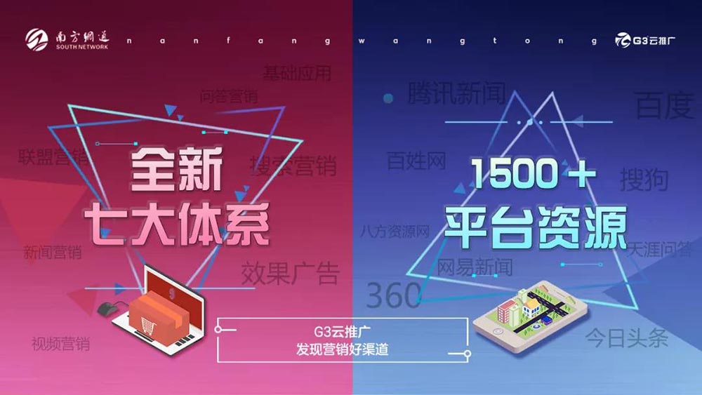 G3云推廣推廣應用有17個,整合了市面上多種的推廣方式。G3云推廣會為企業策劃一整套的推廣方案!